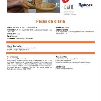 Formação “Peças de Olaria” | de 09 de março a 18 de abril |