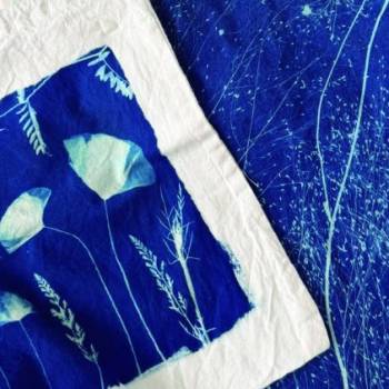 Oficina de Cianotipia da Flora do Mediterrâneo, sob a orientação de Sandra Nascimento